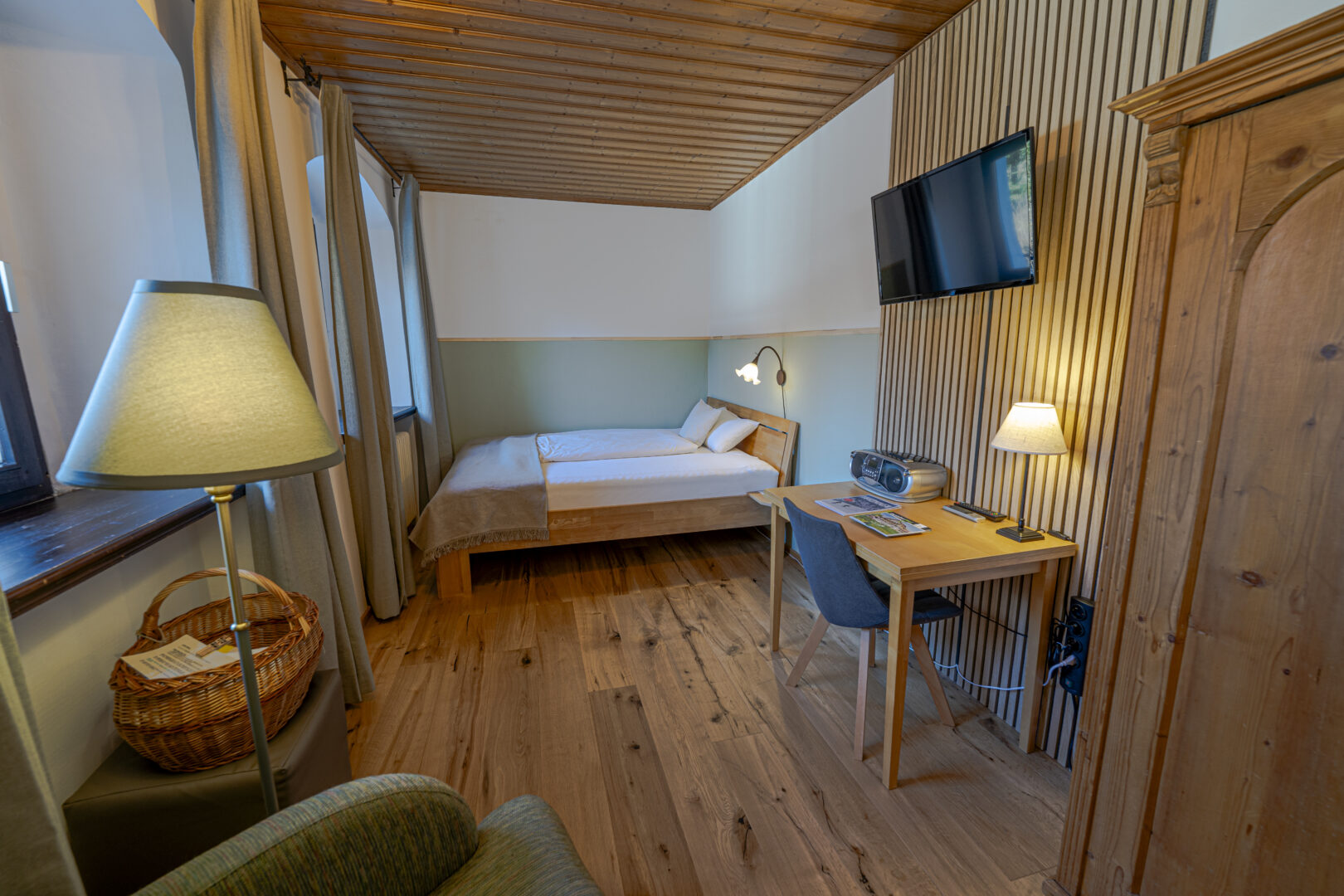 - Jedes Einzelzimmer hat seinen eigenen Charme, und befindet sich im 2. oder 3. Stock im Haupthaus.